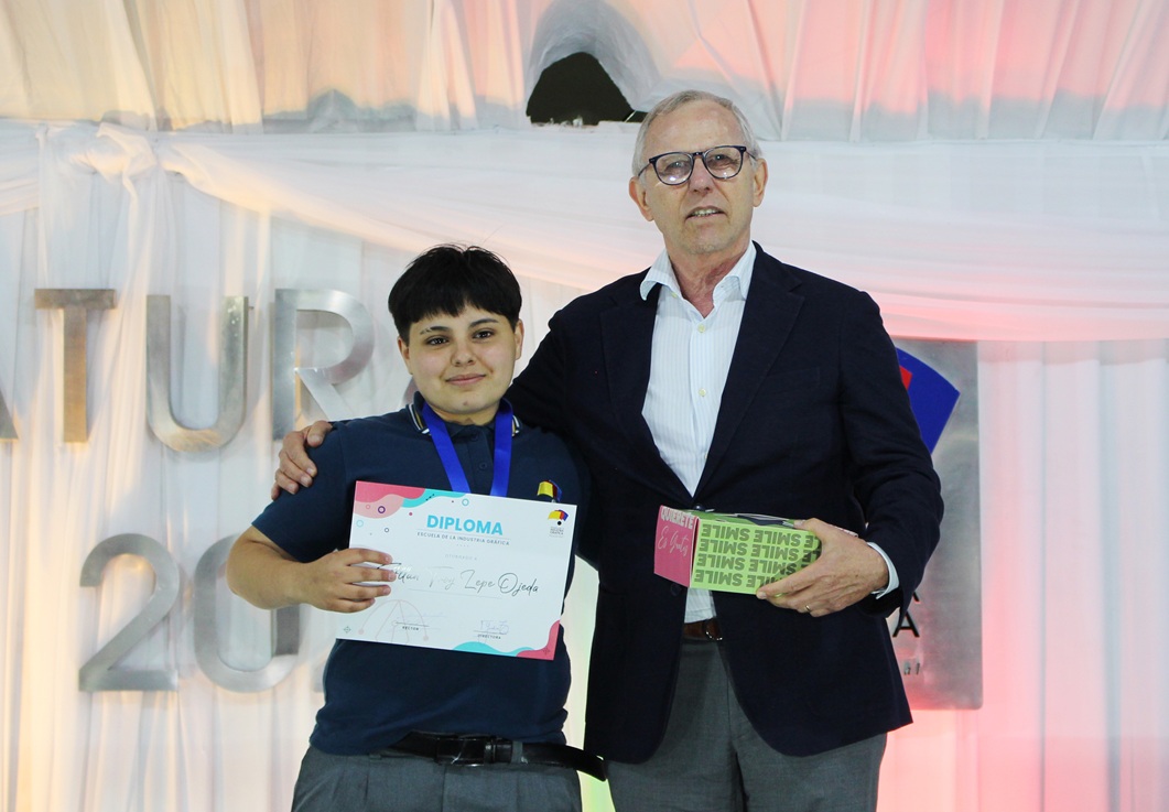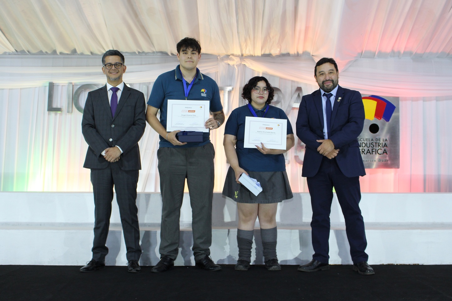 Durante el acto de licenciatura, se realizó la entrega de reconocimientos a un destacado grupo de estudiantes, valorando su dedicación, compromiso y excelencia académica. Las distinciones otorgadas incluyeron: Premio al Mejor Rendimiento Académico, Premio al Espíritu Gráfico, Premio Escuela de la Industria Gráfica, Premio Futuro Gráfico y una premiación especial a la ganadora de la competencia nacional de WorldSkills Chile, un logro que realza el nivel técnico y la calidad de la formación recibida.