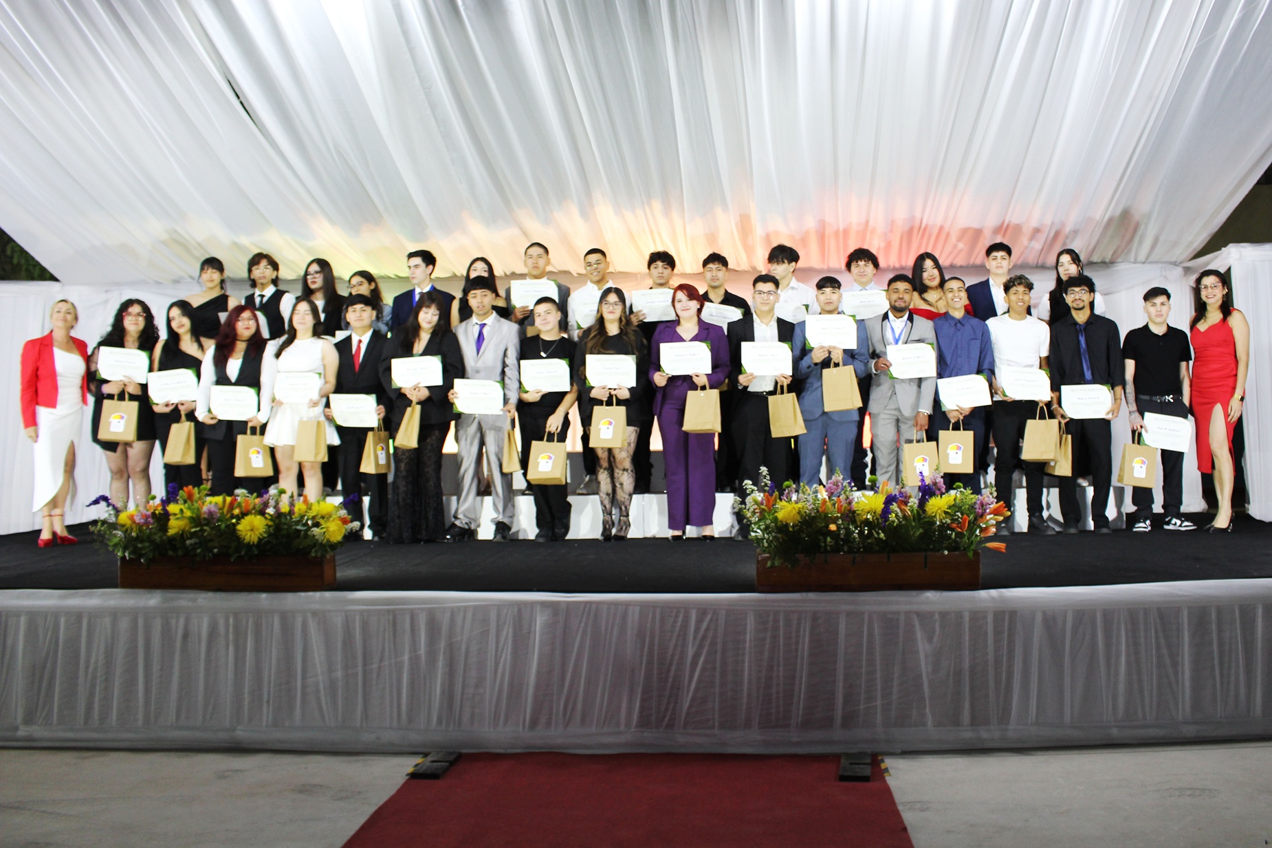 Esta ceremonia trascendió lo académico al contar con la participación activa de toda nuestra comunidad educativa, apoderados, miembros del directorio CEAGA, Centro de Padres y Centro de Alumnos. Subrayando el compromiso con la formación práctica, tuvimos el honor de recibir a representantes de las empresas que son pilares esenciales de la formación dual.