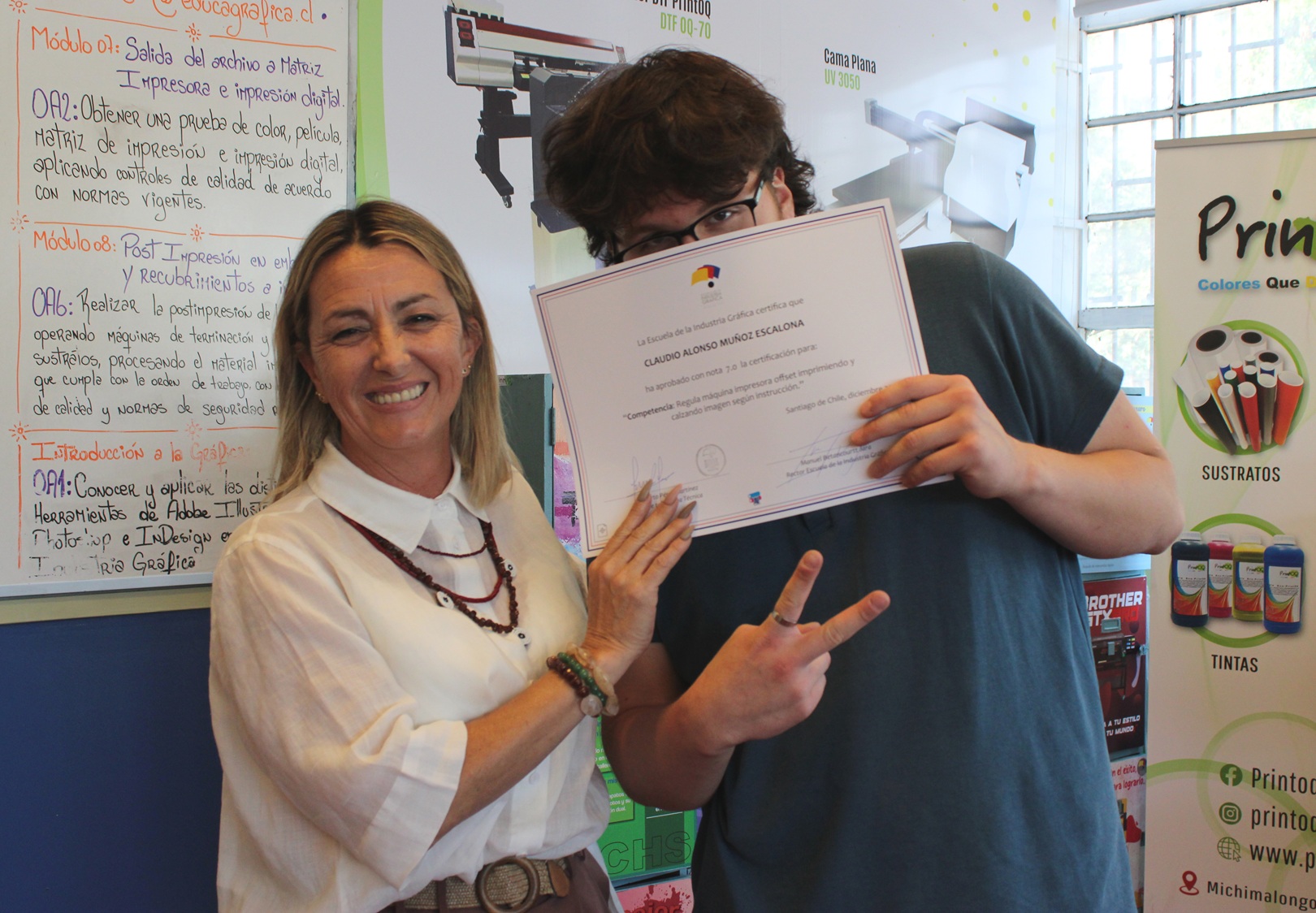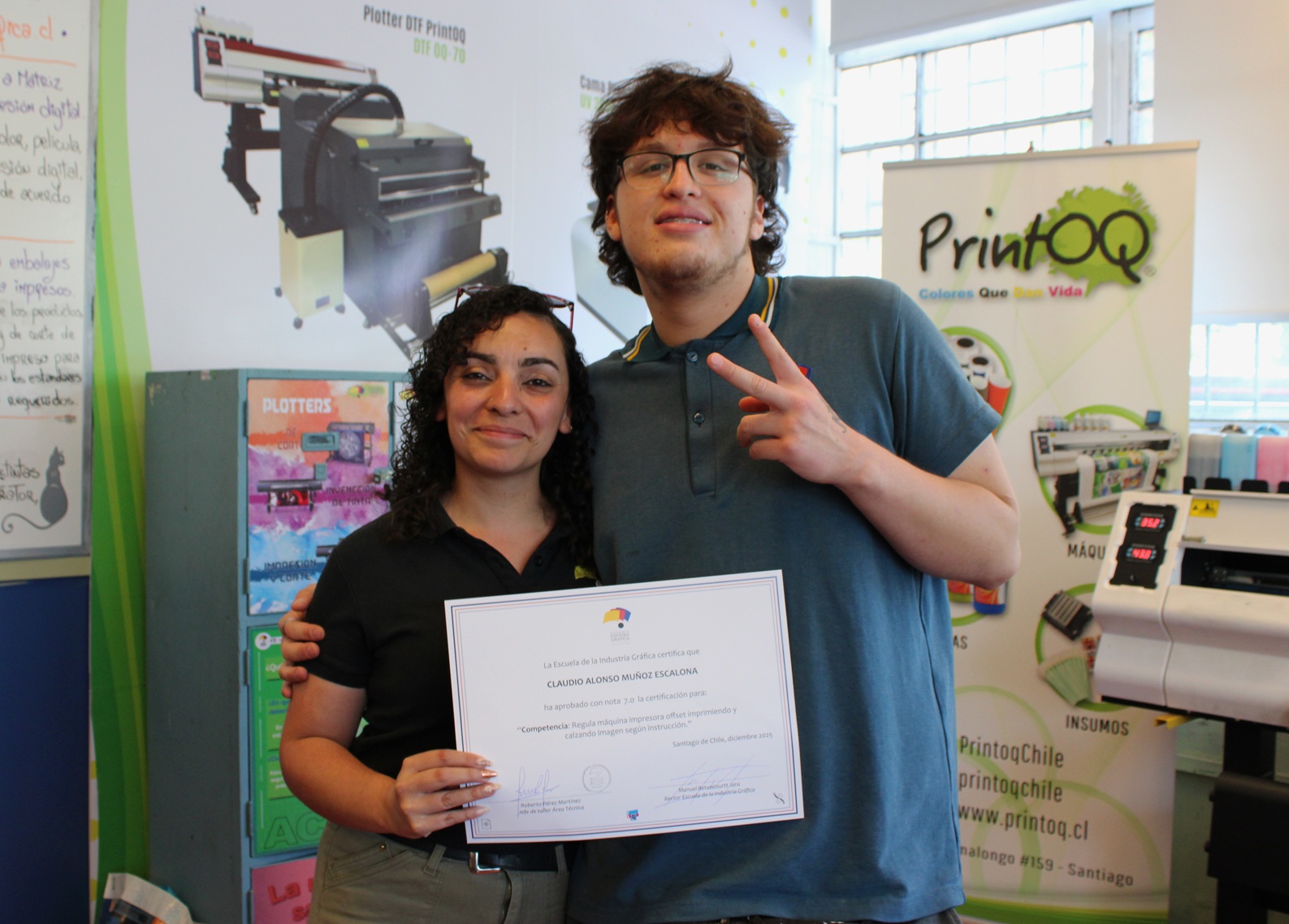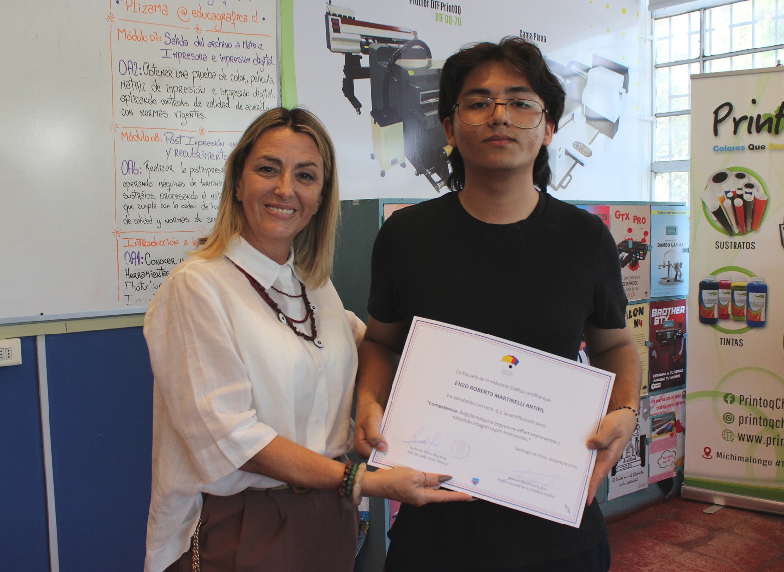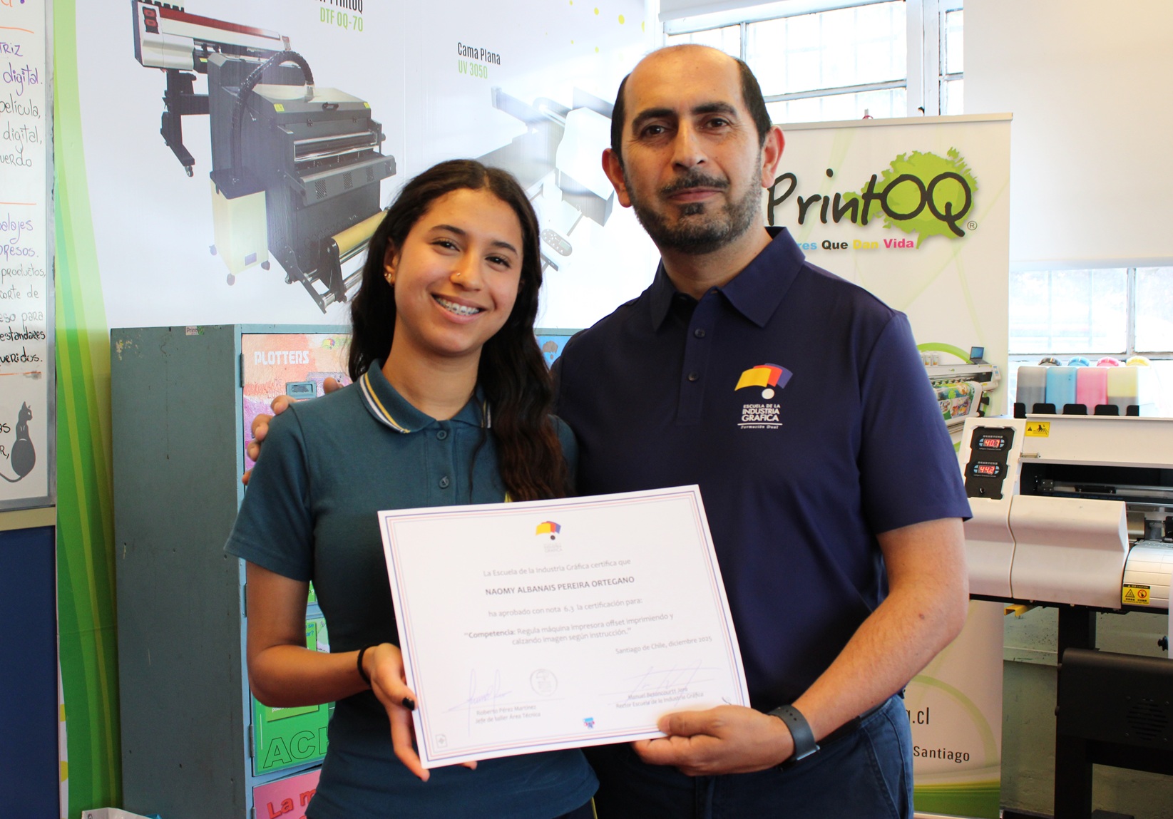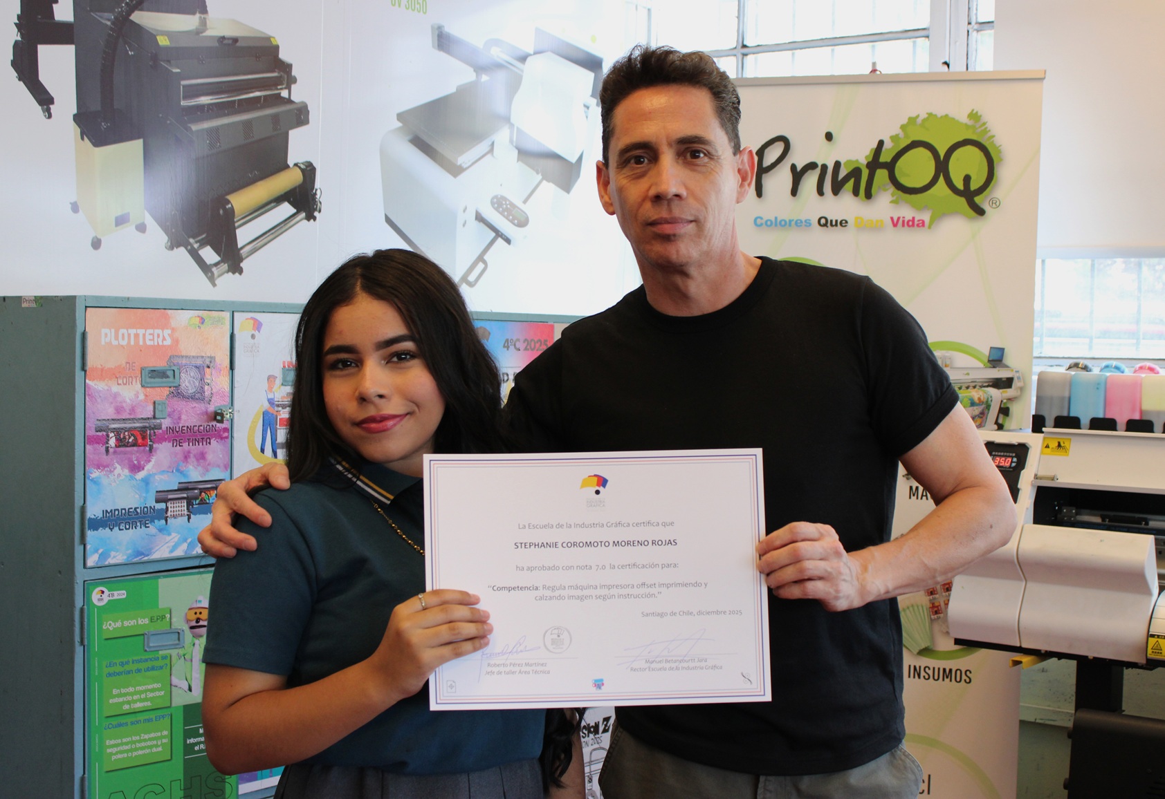 El pasado miércoles 10 de diciembre se llevó a cabo la entrega de certificaciones correspondientes a la última evaluación de competencias del año escolar 2025, orientada a la regulación de la máquina impresora offset, así como a los procesos de impresión y calce de imagen conforme a instrucciones técnicas.