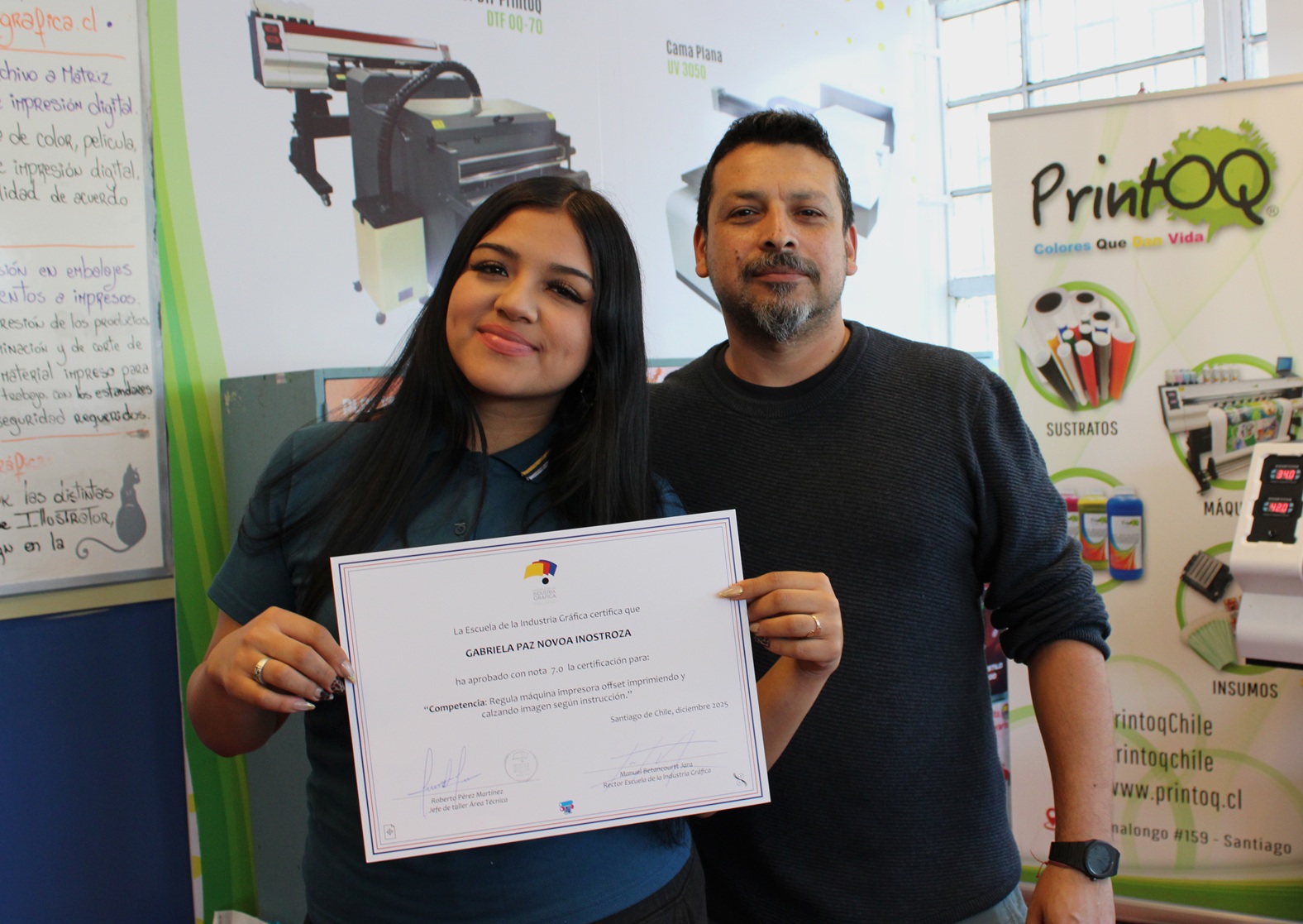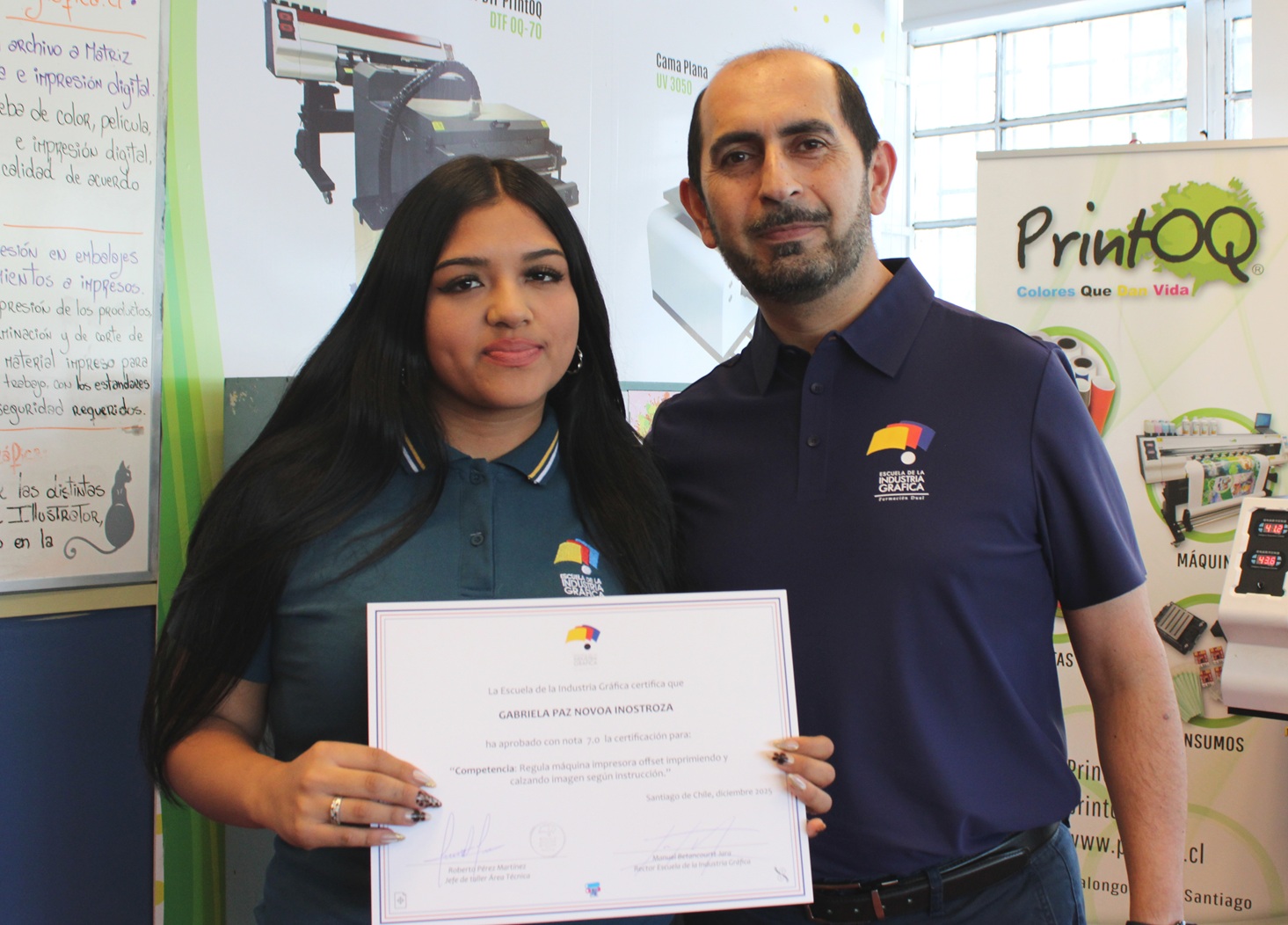 La ceremonia se desarrolló en la sala de talleres PrintOQ y contó con la participación de autoridades de la escuela y profesores del área técnica, quienes valoraron el esfuerzo y dedicación demostrados por los estudiantes durante el proceso de evaluación. Esta instancia permitió reconocer el logro de competencias fundamentales para su formación profesional.